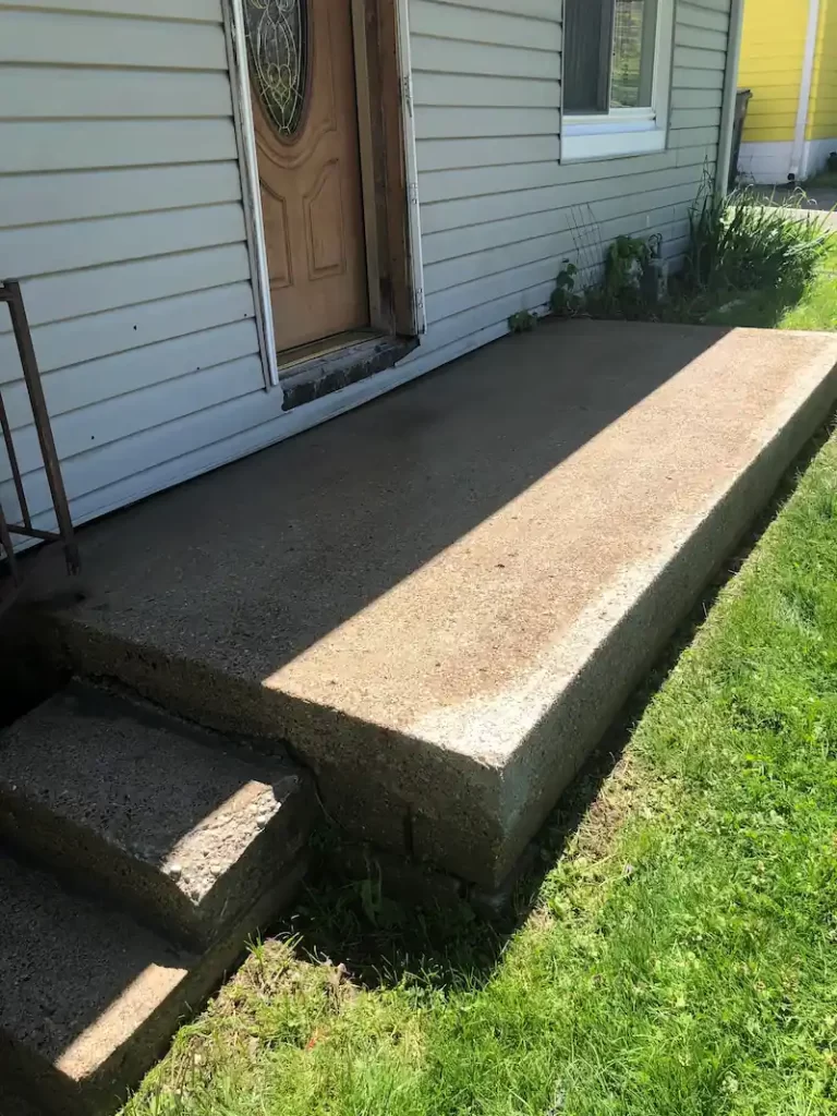 This customer wanted their concrete walkway and house cleaned from all of the dirt that has pilled up over the years. This customer had never pressure washed their home and some of the black mold has permanently stained the vinyl. We used a safe mold mixture to remove all of the green algae as well as any black mold.